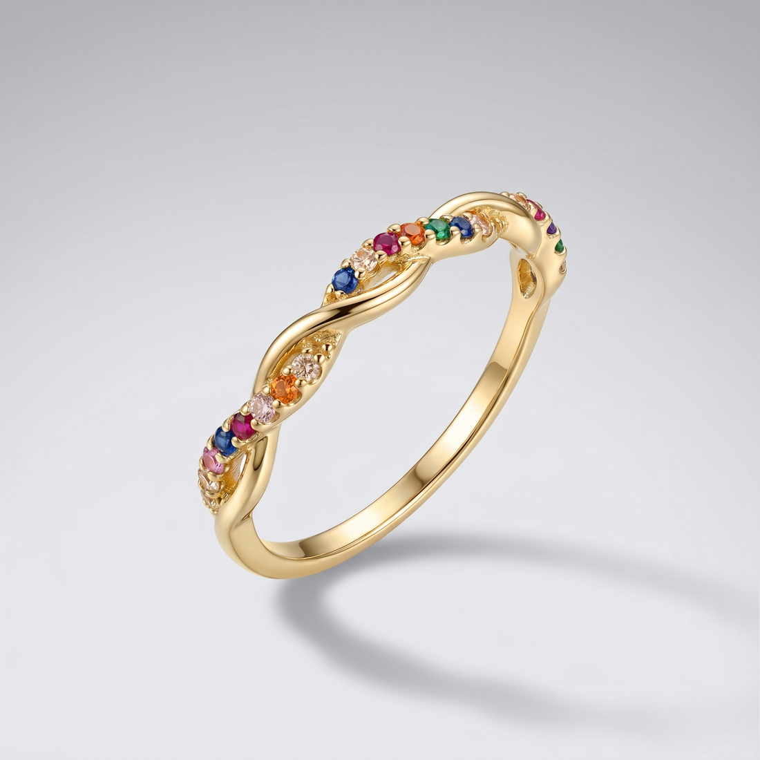 Anillo Trenzado con Circones Multicolor – Oro 18K