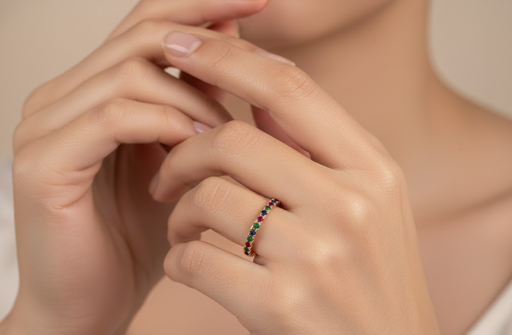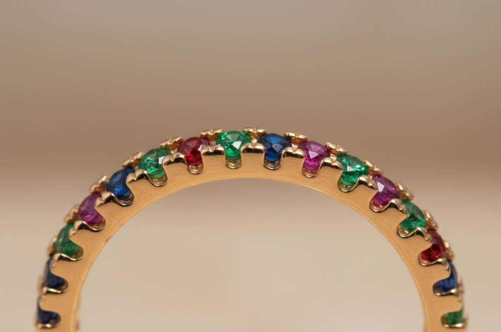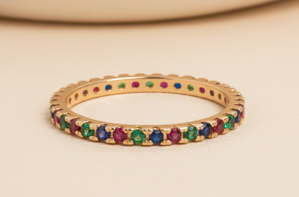 Anillo Eternity con Circones Multicolor en Oro Amarillo 18k | Joyería Tayrona