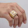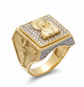 Anillo Religioso en Tres Oros con Circones Blancos | Joyería Tayrona