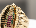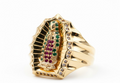 Anillo Virgen de Guadalupe con Circones de Colores en Oro Amarillo 18k | Joyería Tayrona