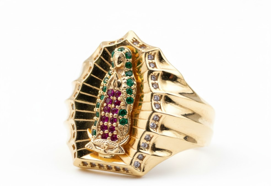 El Anillo Virgen de Guadalupe Tayrona es una joya que une fe, identidad y lujo.