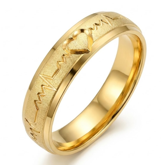 El acabado combina texturas mate y brillo, resaltando la figura del corazón y los detalles del pulso cardiaco. Con un ancho de 4 mm, este diseño es cómodo, ligero y perfecto para uso diario.