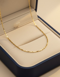 Con un grosor de 0.8 mm, una longitud de 40 cm y un peso de 1.0 gramo, esta cadena ofrece ligereza sin perder la resistencia del oro macizo.