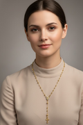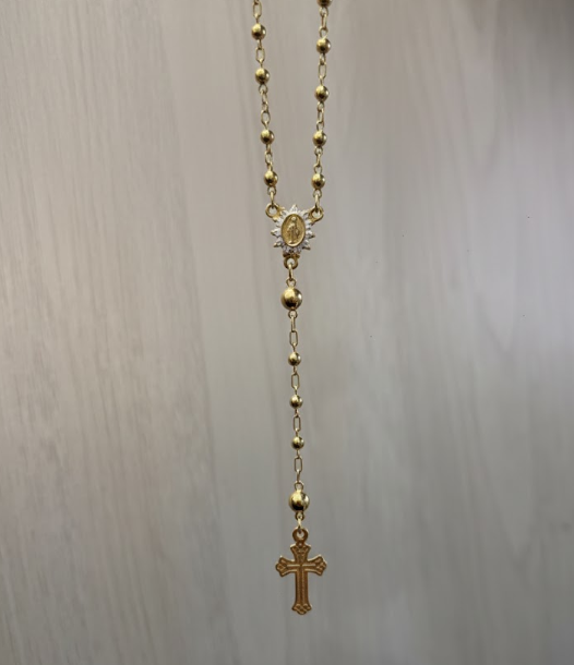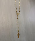 Camándula clásica y elegante elaborada en oro amarillo 18K, con bolitas lisas de 3 mm que le aportan un brillo uniforme y un acabado refinado. Incluye medalla central y cruz en oro amarillo, todo con un diseño limpio y tradicional.
