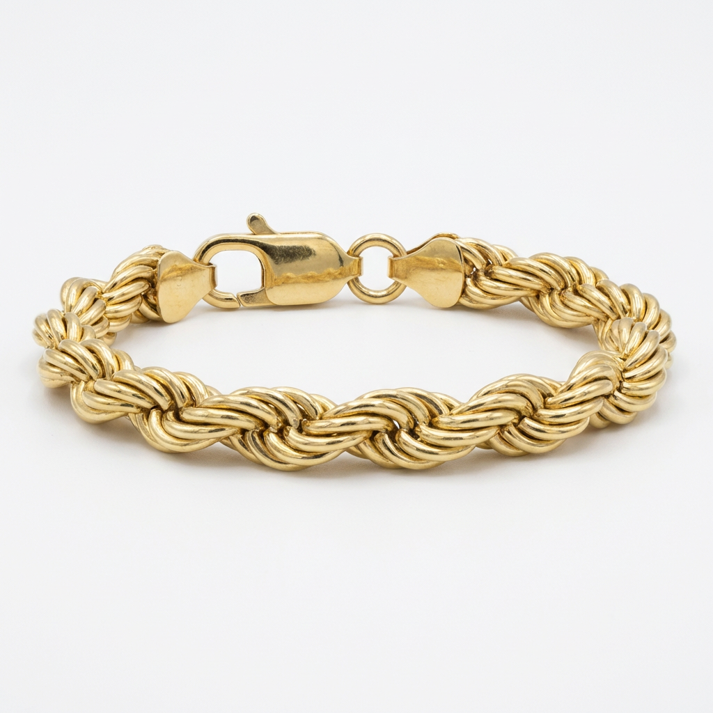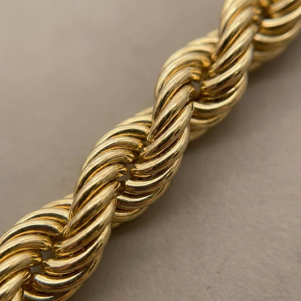 El ancho de 6 mm le aporta una presencia distinguida sin ser exagerada, ideal para uso diario o para complementar looks más formales. Su acabado pulido realza el brillo natural del oro, reflejando calidad artesanal en cada eslabón.